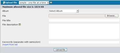 Other alternative upload mechanisms (like Client-based agents as JUpload or similar) may be provided as third-party contributions - you're encouraged to look at them as well, but please keep in mind that the coppermine developers can only provide limited support for third-party contributions.
